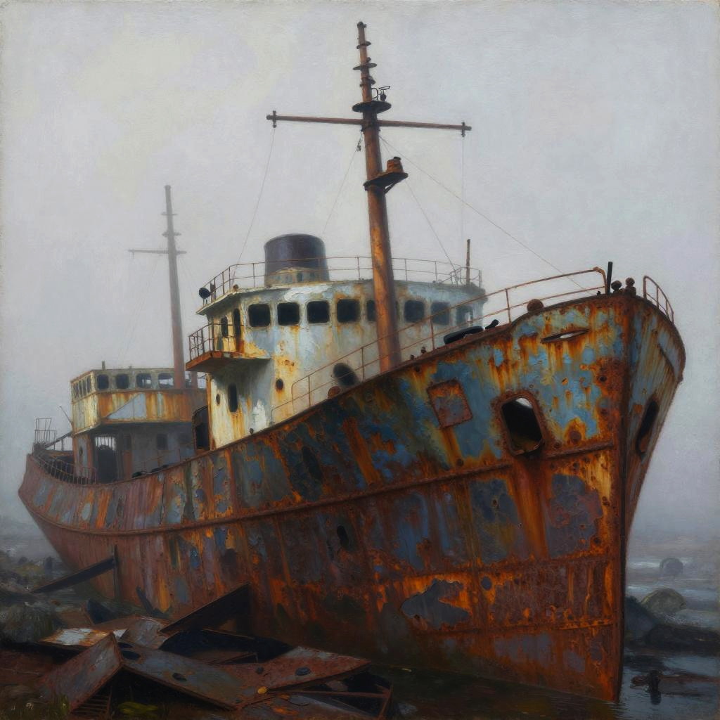 Expressionist painting of a fractured glacier under cold diffuse light, in the style of Anselm Kiefer, with icy crystalline patterns.