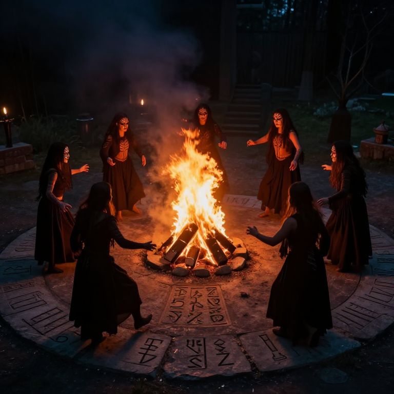 Witches Dancing Around Fire Circle