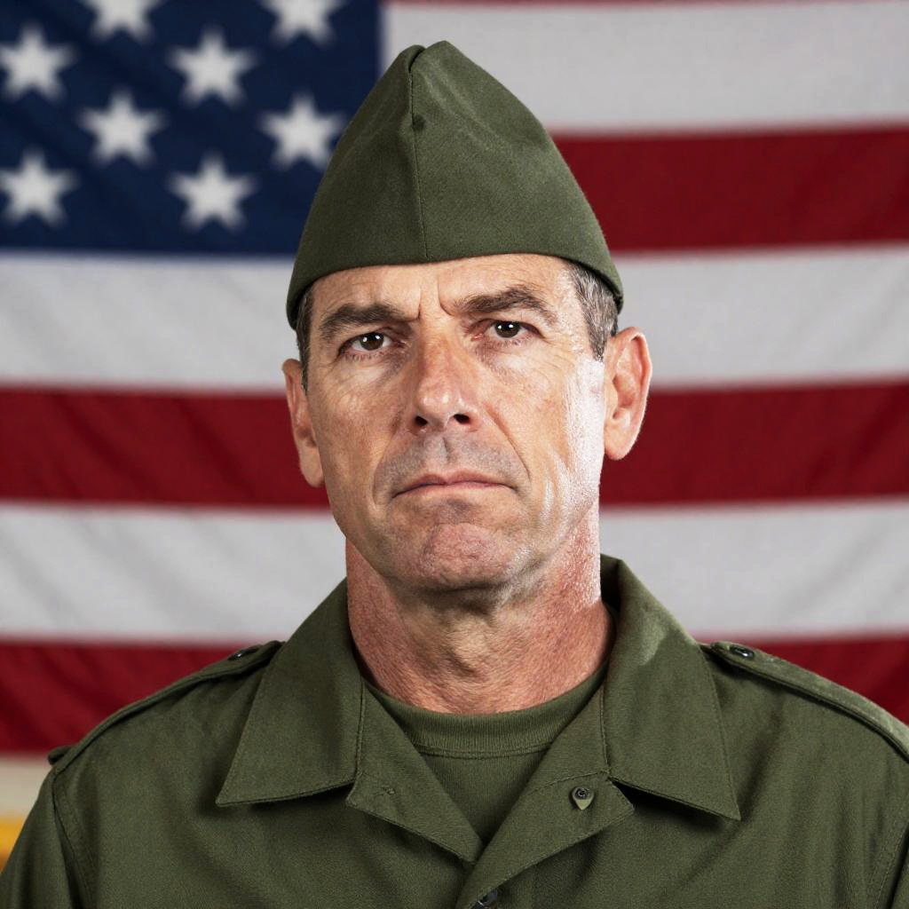 Serious Middle-Aged Soldier in Uniform