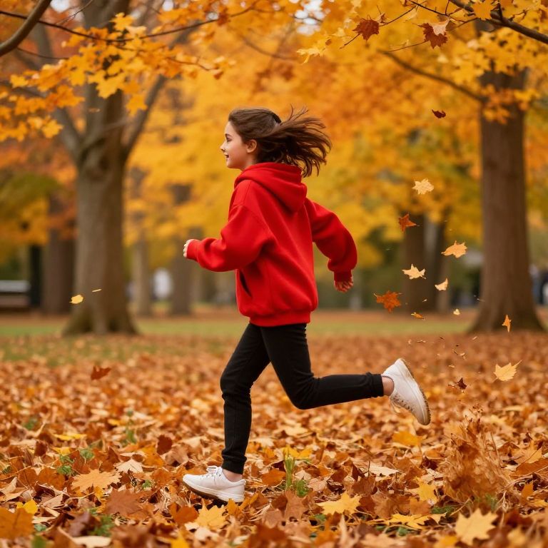 Girl Enjoying Autumn Leaves in Park