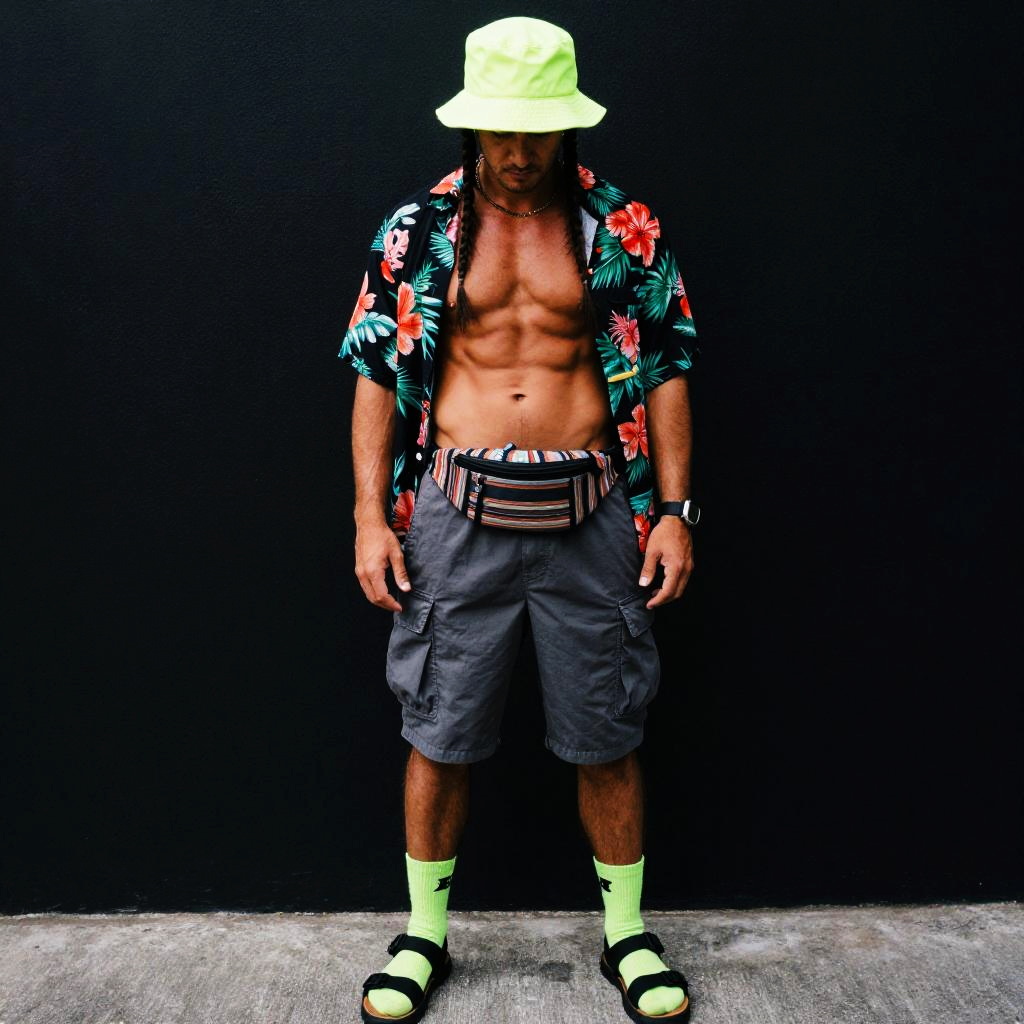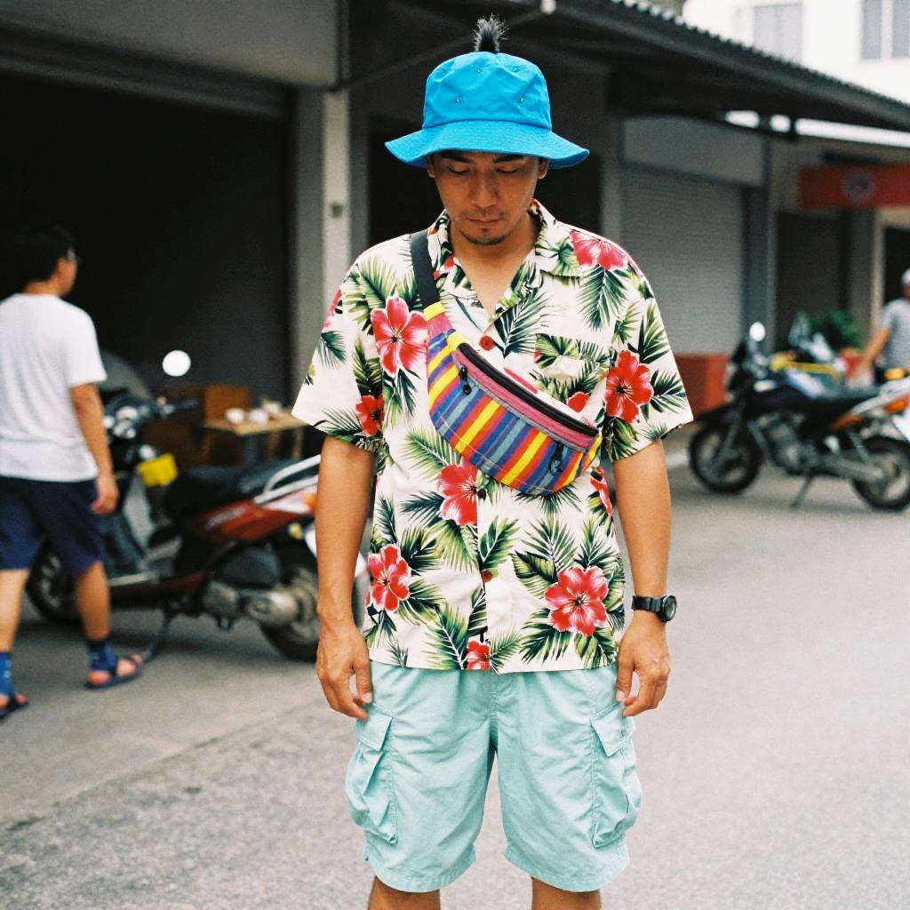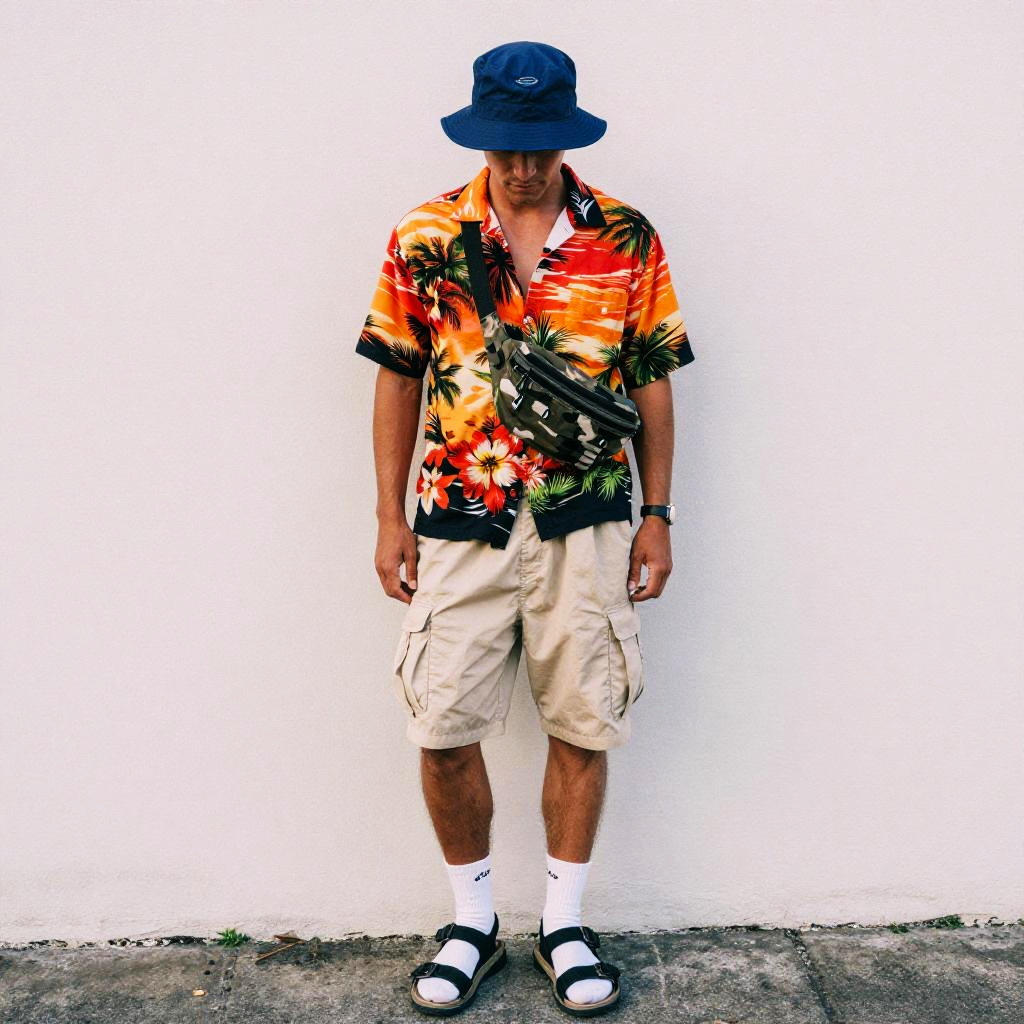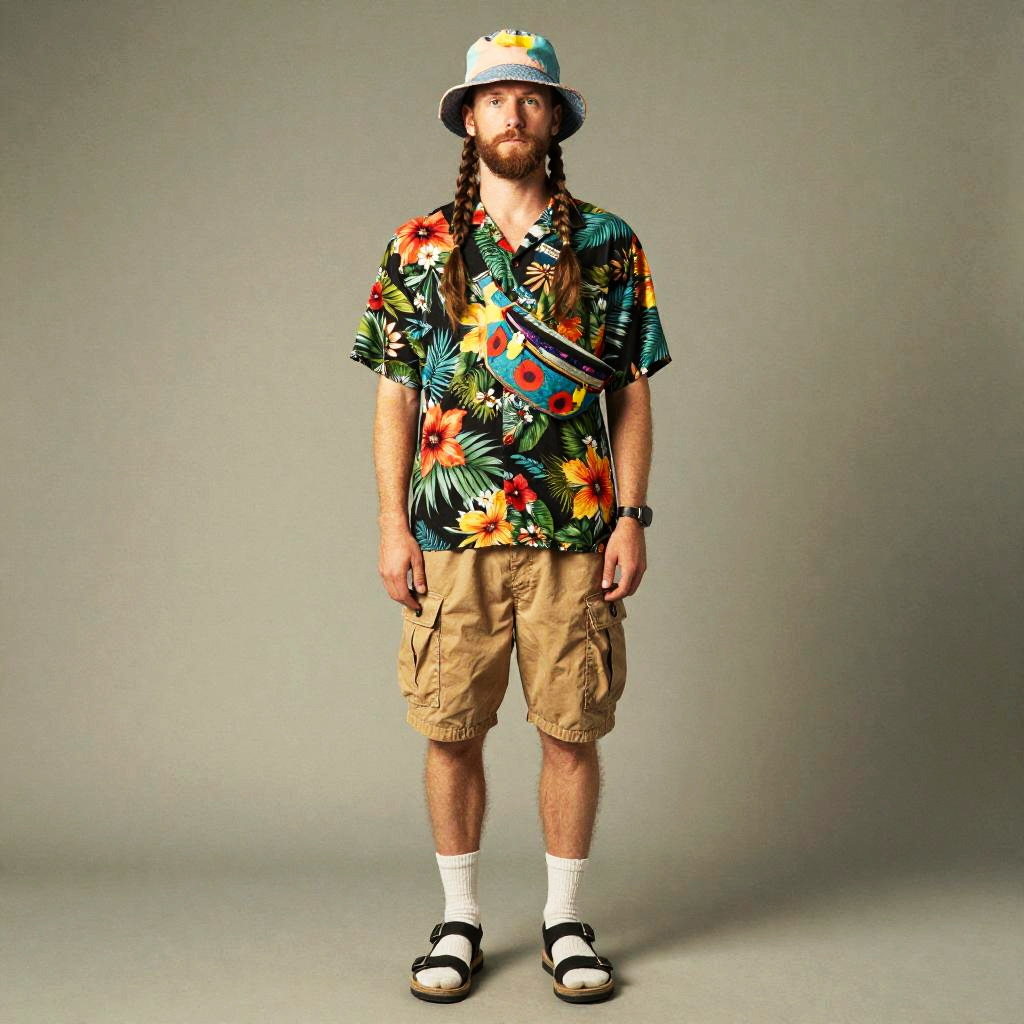 Tacky Tourist in Hawaiian Shirt and Bucket Hat