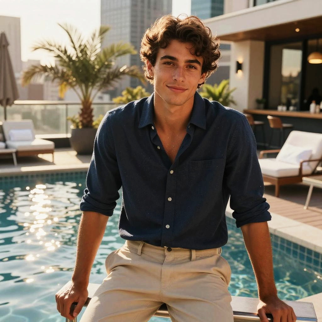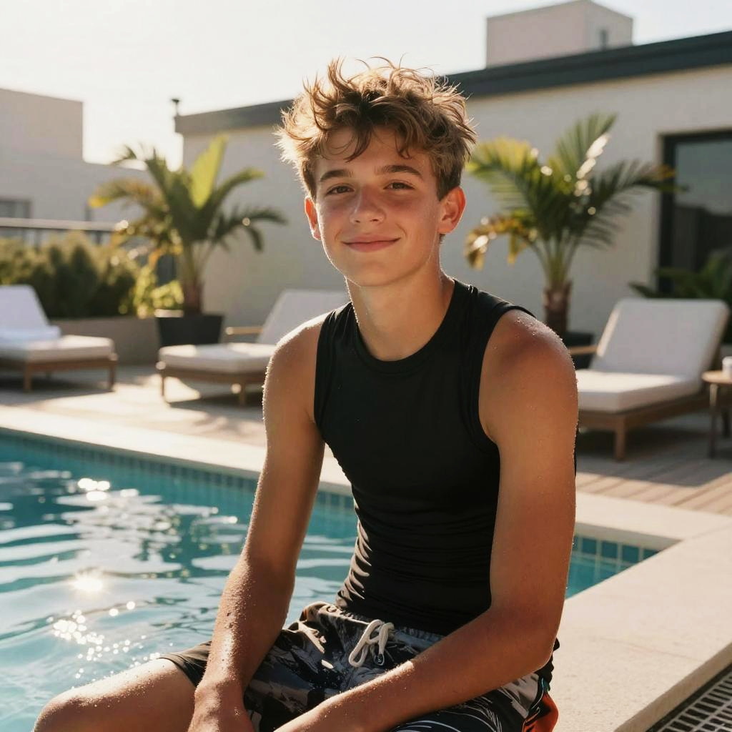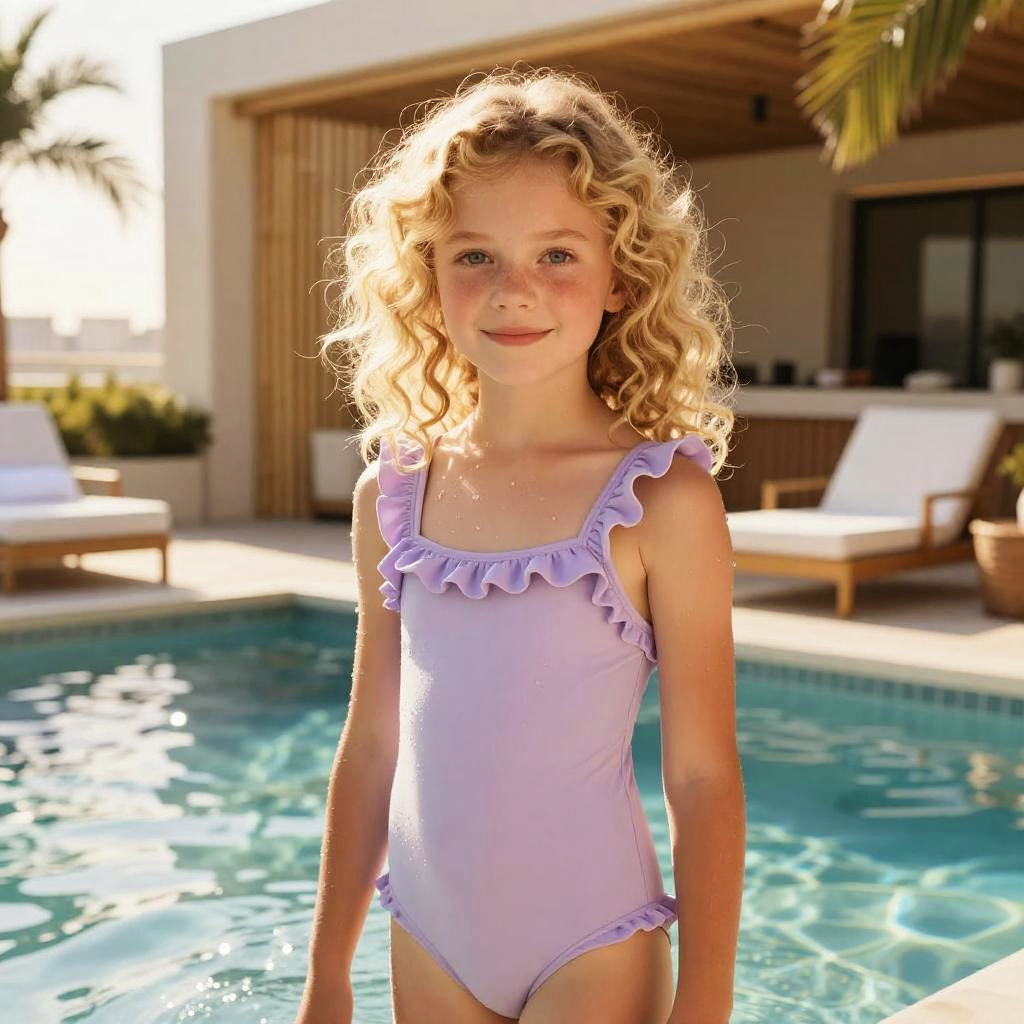 Youthful Girl at Coastal Rooftop Pool