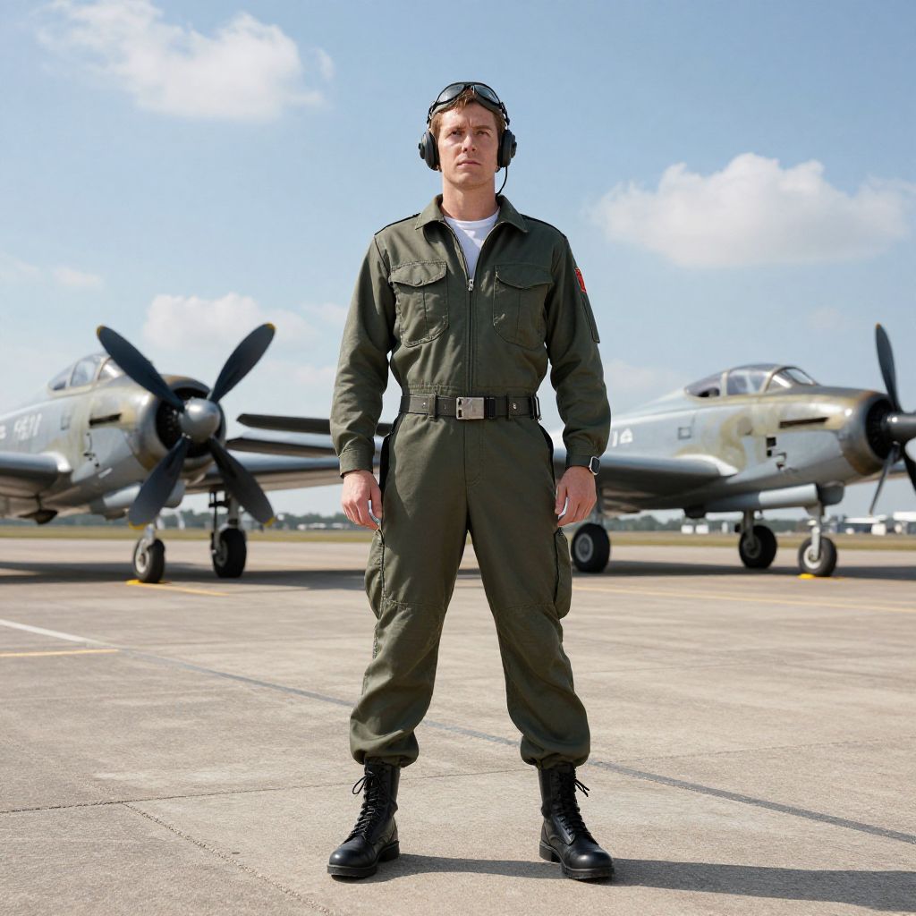 "Warplanes Battles Over Pacific, image of a man in a pilot ' s outfit standing in front of a formation of"