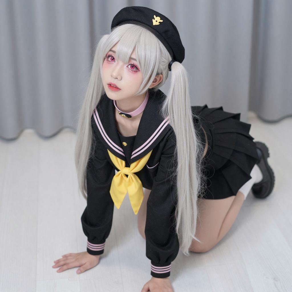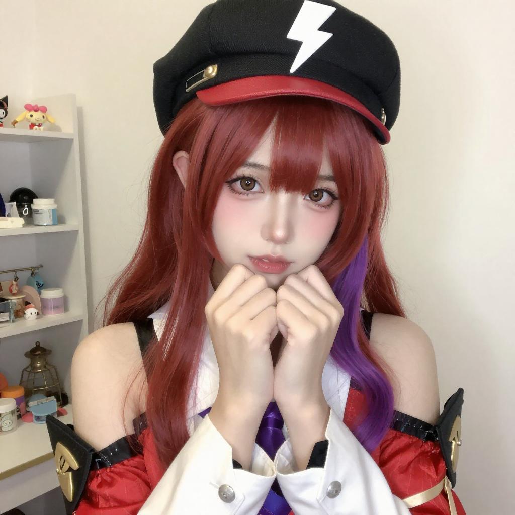 Playful Military-Style Cosplay Portrait