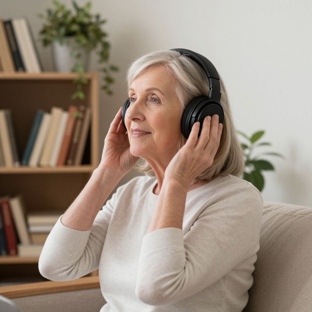 Senior Woman Enjoying Music Indoors