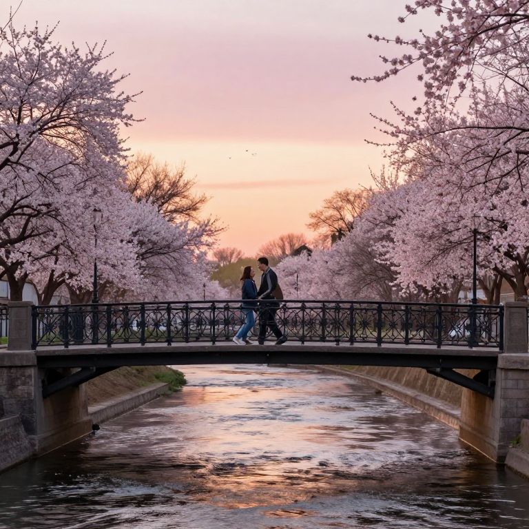 Romantic Springtime Pedestrian Bridge Scene