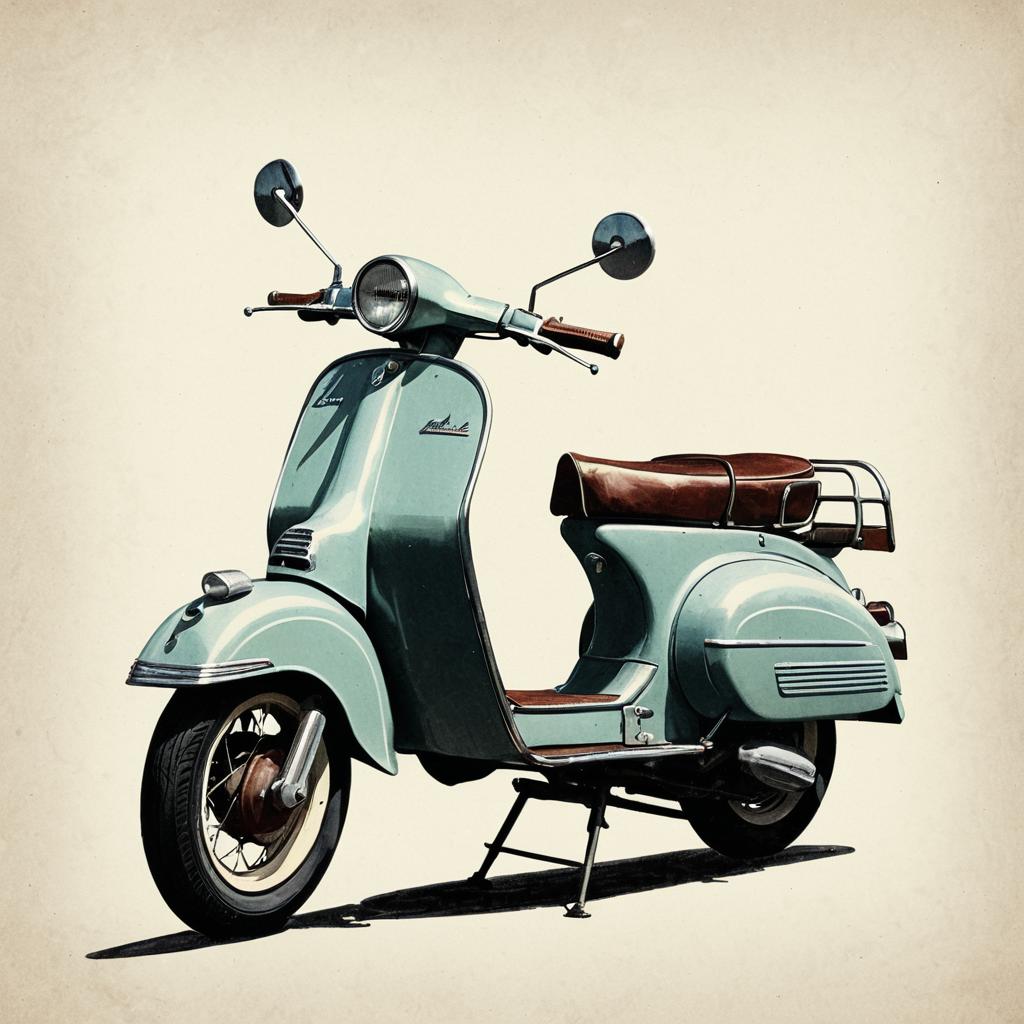 Retro painting illustration of a 1950s scooter, 2D, muted tones, retro style art, trending on ArtStation, nostalgic and vintage aesthetic