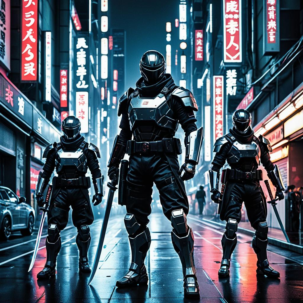Futuristic Ninja Warriors in Cyberpunk City