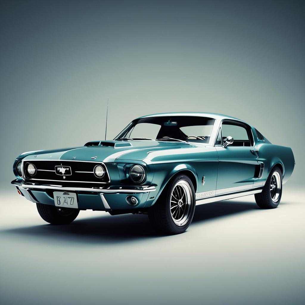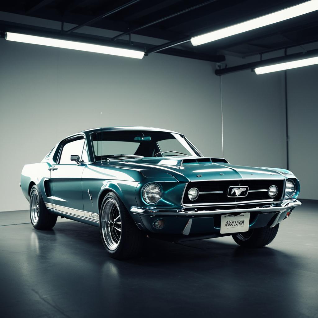A 1967 Mustang redesigned by an avant-garde Dutch designer, photorealistic studio lights, captured with Hasselblad and Nikon 50mm lens, sharp details, Octane Render, inspired by artists like ArtGerm and Ross Tran.