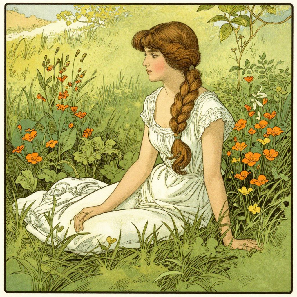 Edmund Dulac Style Serene Meadow Woman