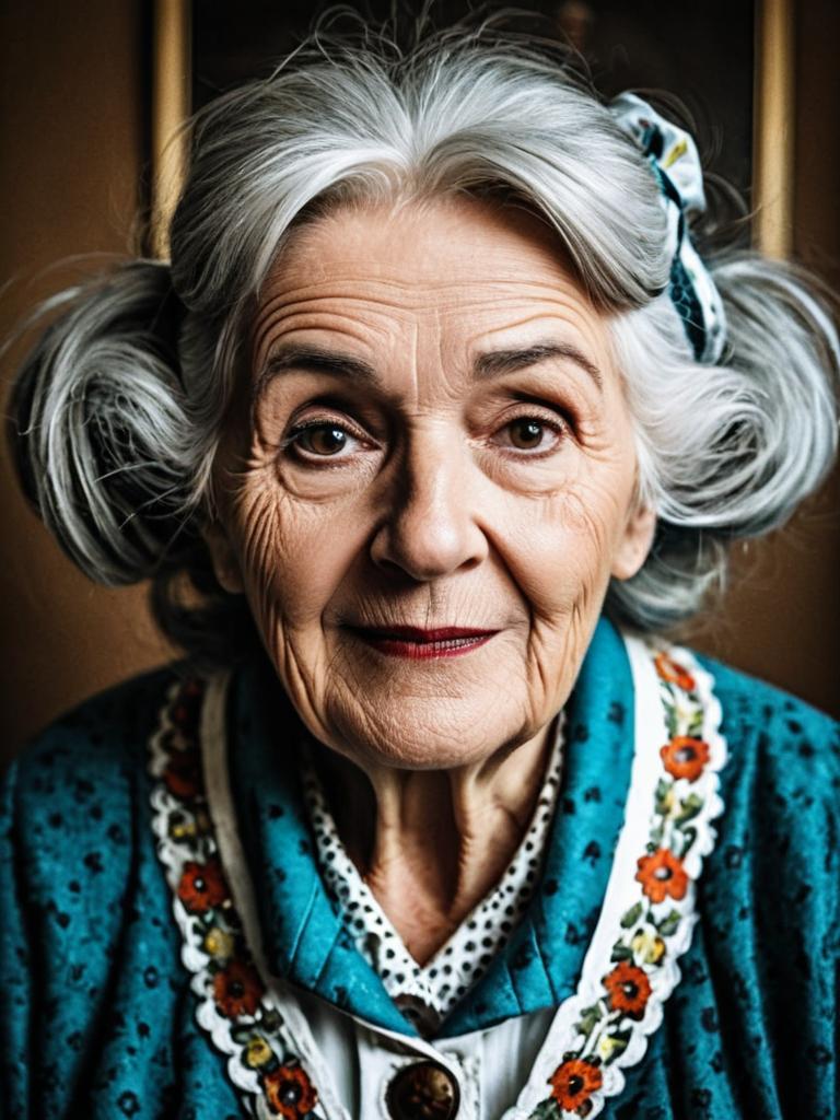 Elderly Woman in Comedic Costume Portrait