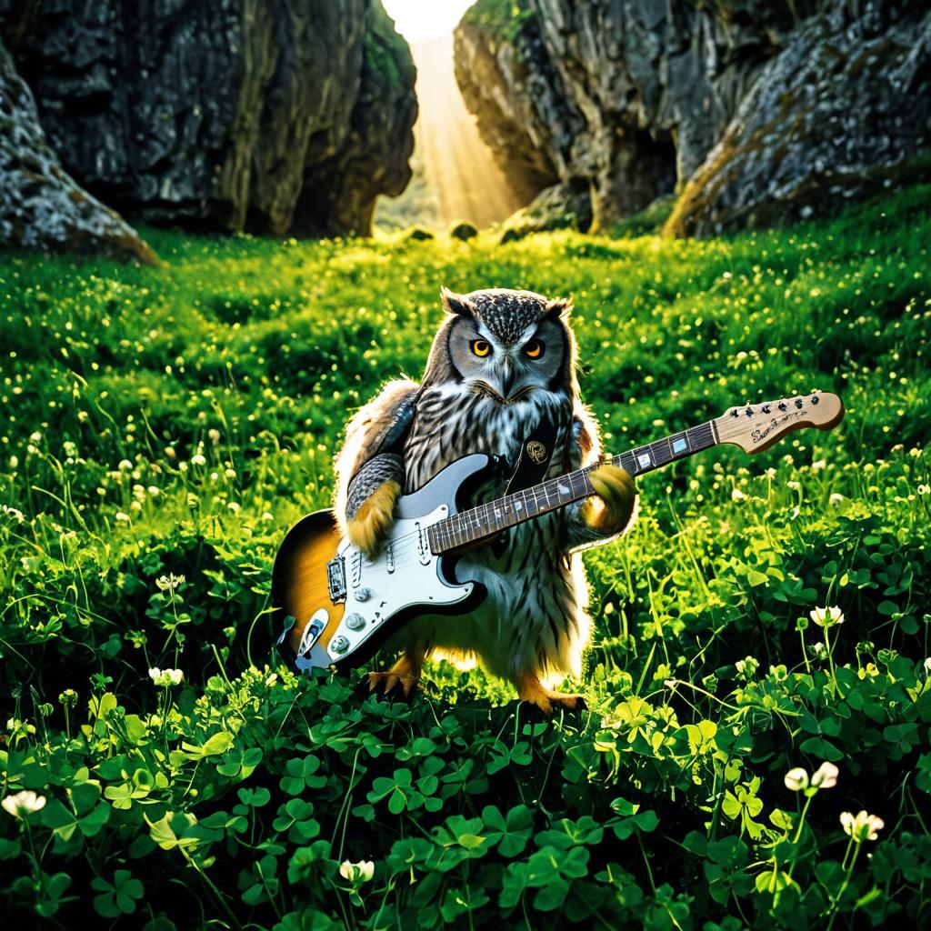 Owl Playing Guitar in Clover Field