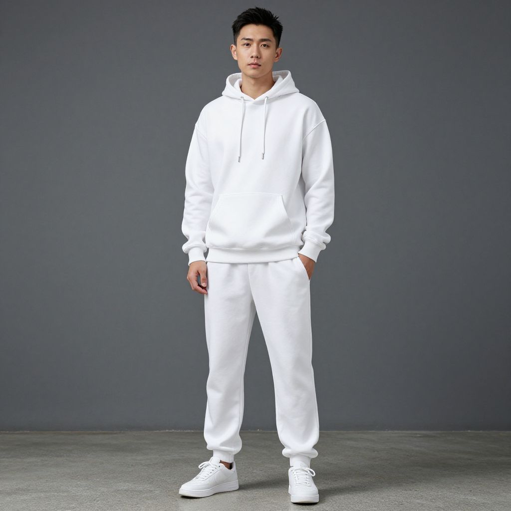 "soap fancy dress costume, 1boy, solo, male focus, sneakers, facial hair, beard, shoes, full body, hood, necklace, jewelry, simple background, hands in pockets, standing Realistic photo of casual sexy person with pretty face"