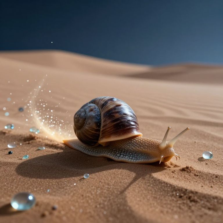 A colossal snail lumbers through a desert of whispering glass sand, leaving a luminous trail of stardust as it erases time in its wake.