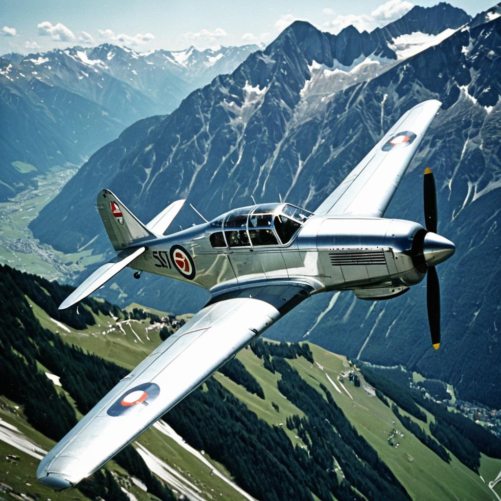 Siebel Si 204 Flying Over Alpine Mountains