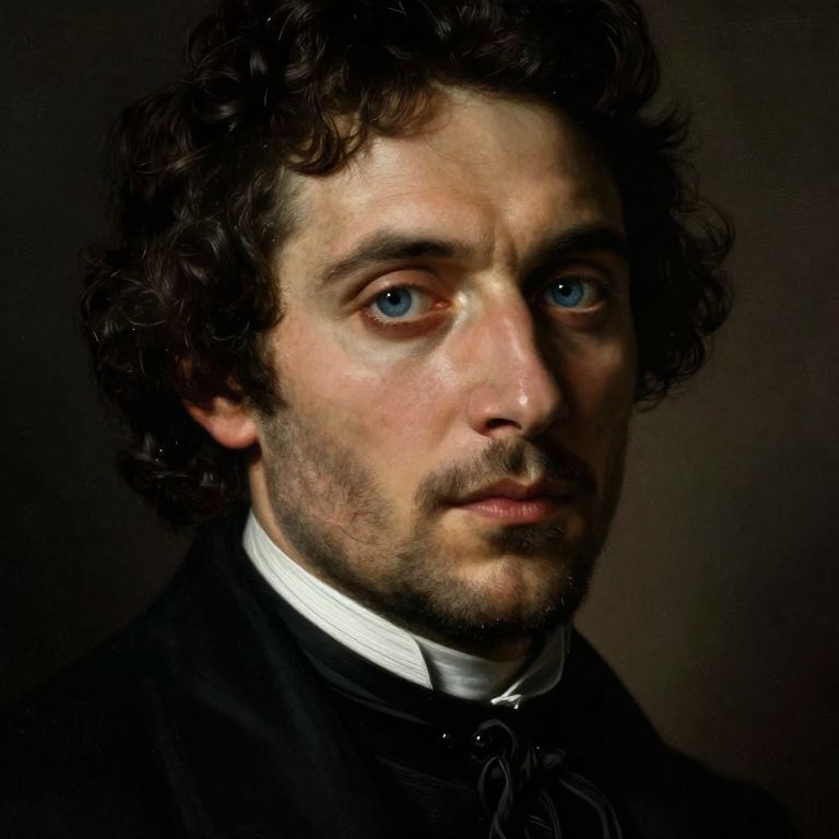 Visualize an intricately detailed portrait, reminiscent of Caravaggio's masterful chiaroscuro technique, portraying a captivating subject with eyes that seem to hold the secrets of their soul. The fusion of Victorian attire and modern fashion surrounding them adds an air of timelessness, drawing the viewer into their enigmatic gaze. As light and shadow dance across their features, creating sharp contrasts between radiant skin and rich textures, one cannot help but feel a deep connection with this introspective figure. This striking image masterfully captures the essence of both past and present, inviting the observer to explore the depths of the subject's piercing blue eyes and unravel the mysteries hidden within.