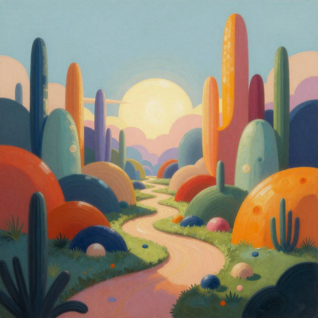 A surreal landscape created by an ai generated picture maker, vibrant abstract shapes and vivid colors merge with natural elements, digitally painted dreamlike scenery, futuristic art style, ethereal glowing light effects, high detail digital painting