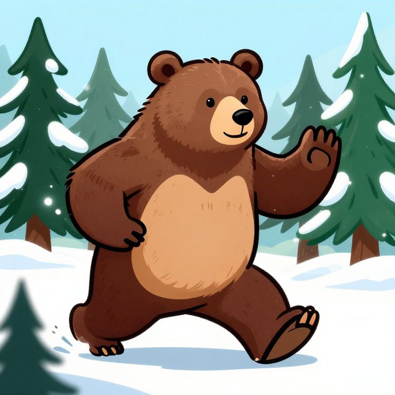 Putin on a bear, cartoon style, vibrant colors, whimsical Russian folklore theme, playful and bold lines, surrounded by snowy pine trees, dynamic composition