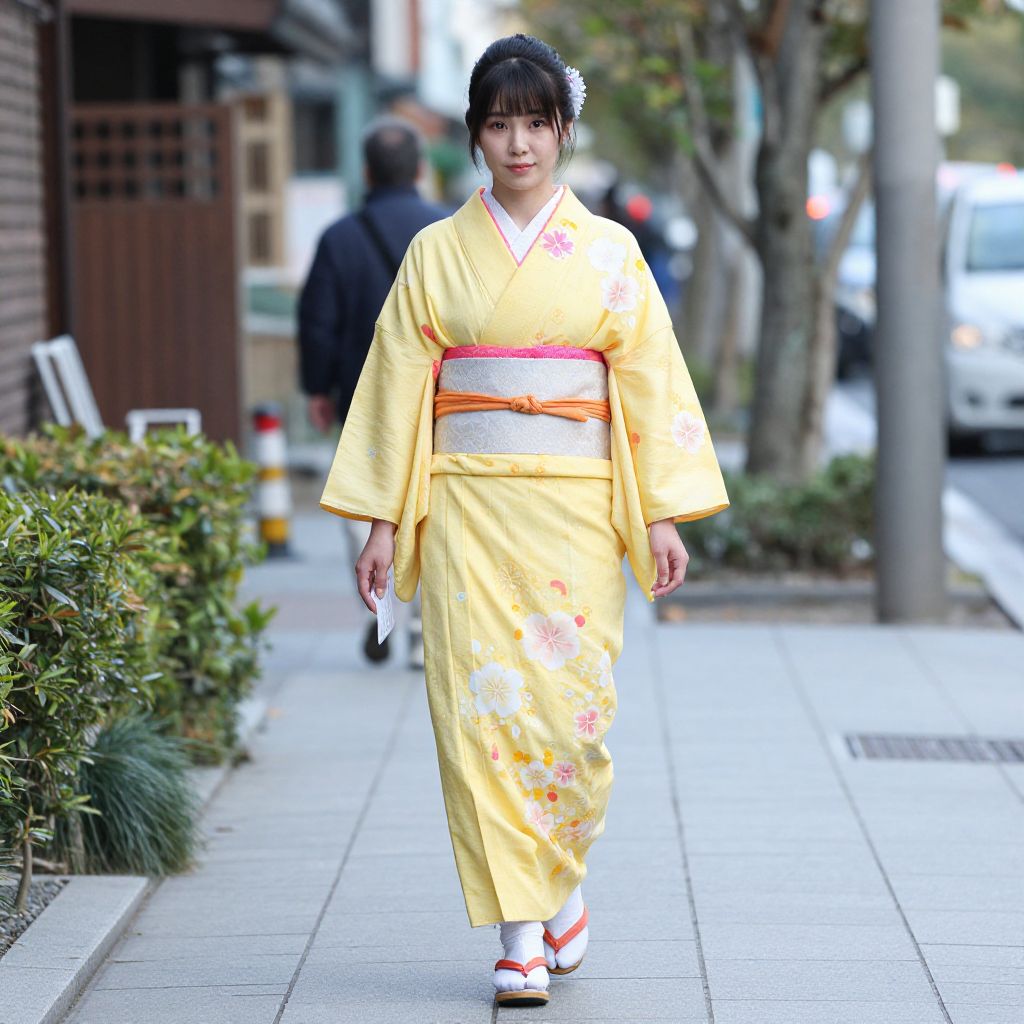 Woman in Yellow Kimono Walking