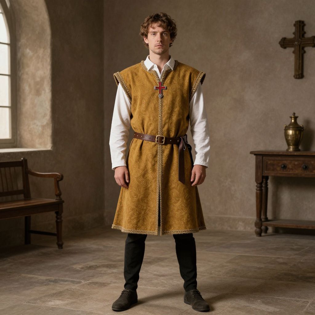 Medieval Theater Costume, man in a medieval costume standing in a room