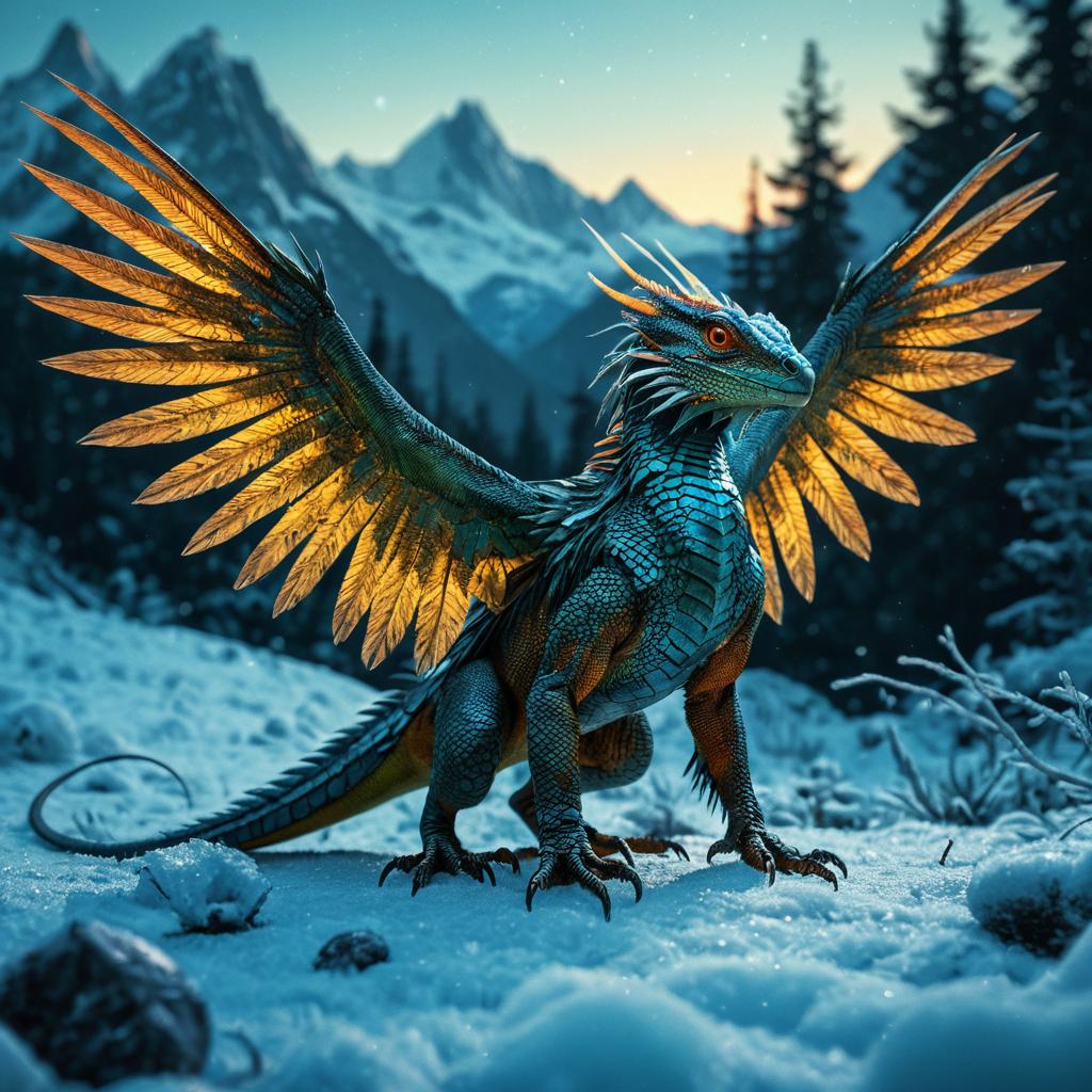 Crystal-Winged Phoenix-Lizard Hybrid in Snowy Alpine Forest