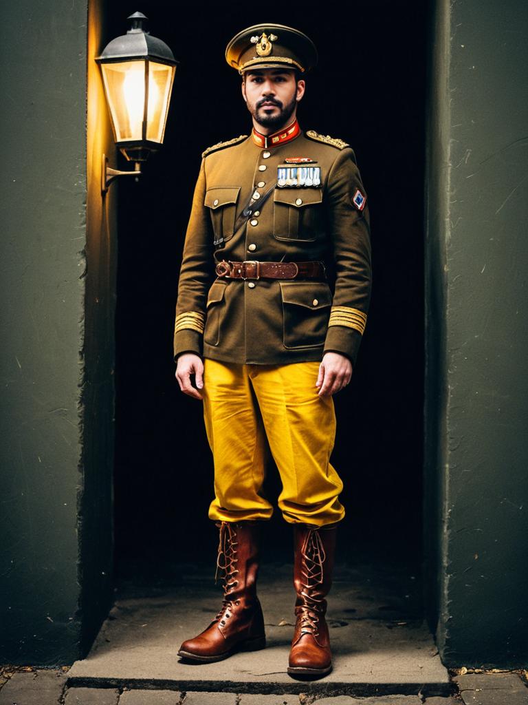Man in Vintage Military Uniform Standing Outdoors