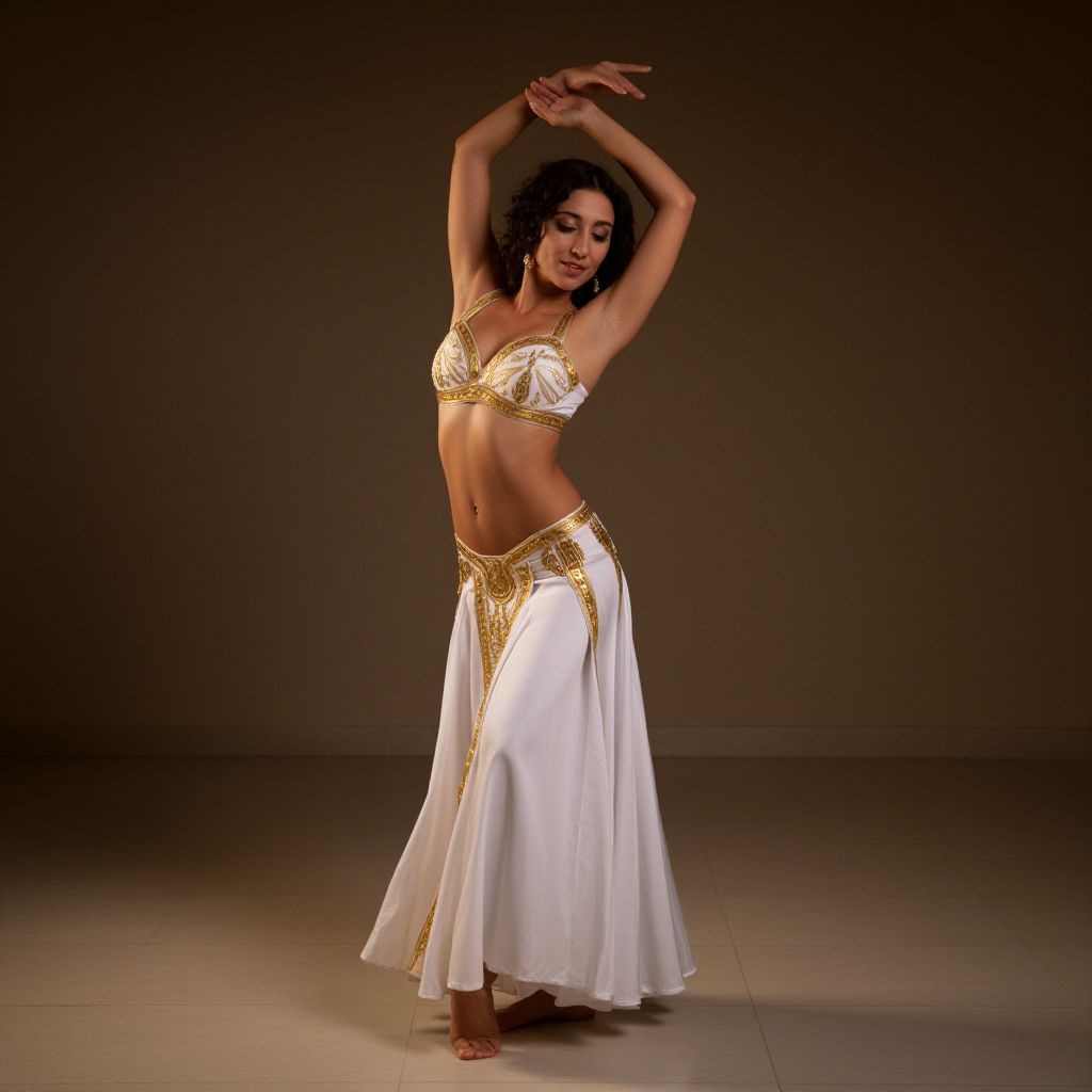 Serene Belly Dancer in White and Gold