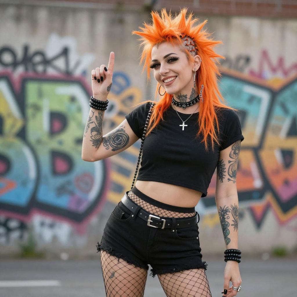 Punk Woman with Green Mohawk