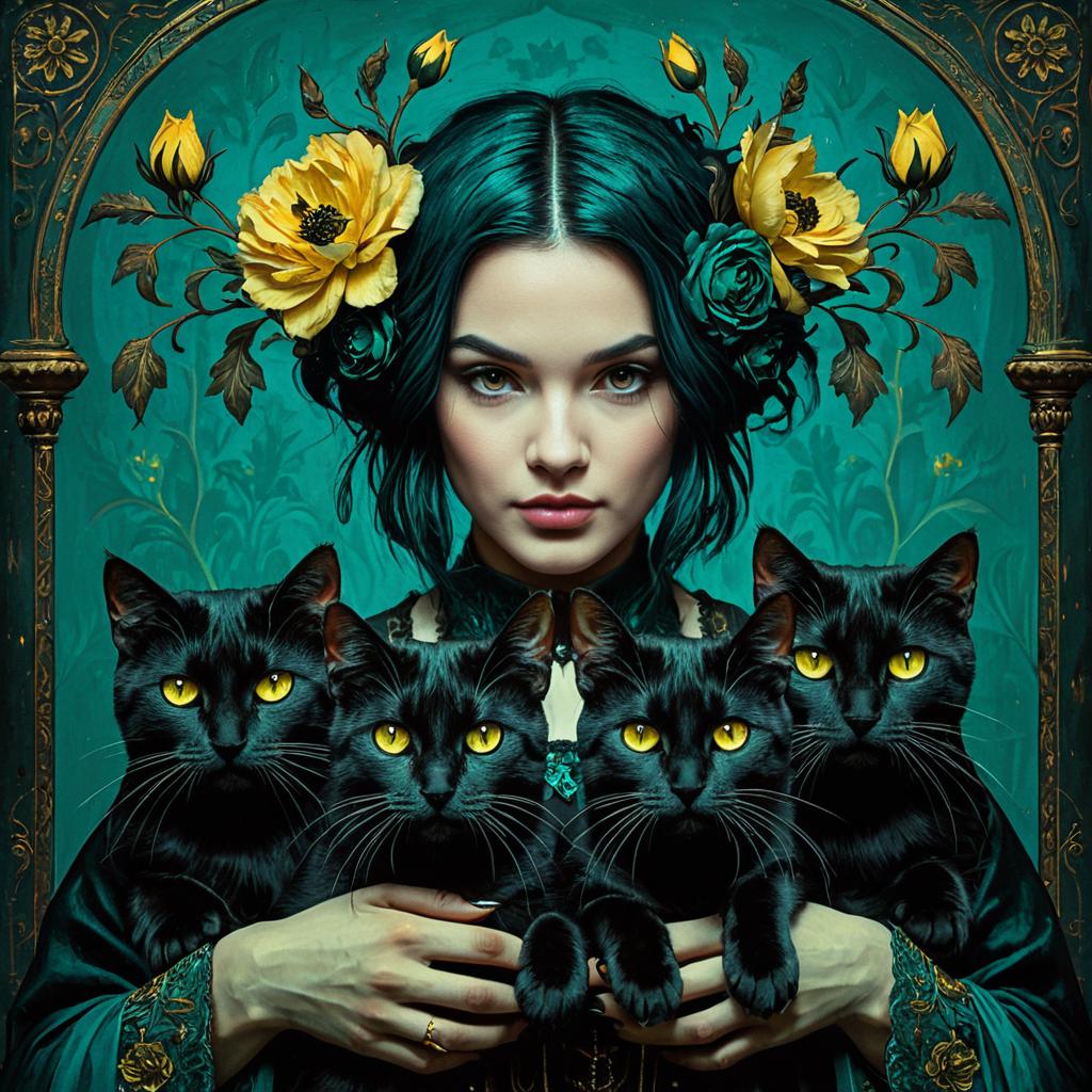 A ethereal seer with a memory that survives the great cataclysm and a small mechanical fox on her shoulder. Collage artwork inspired by Leonora Carrington, combining surreal and dreamlike elements with intricate textures and layered imagery. The artwork blends mysticism with a mixed-media aesthetic, capturing an atmosphere of haunting wonder.