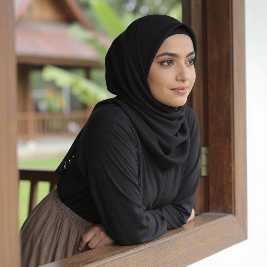 Young Woman in Green Hijab on Swing