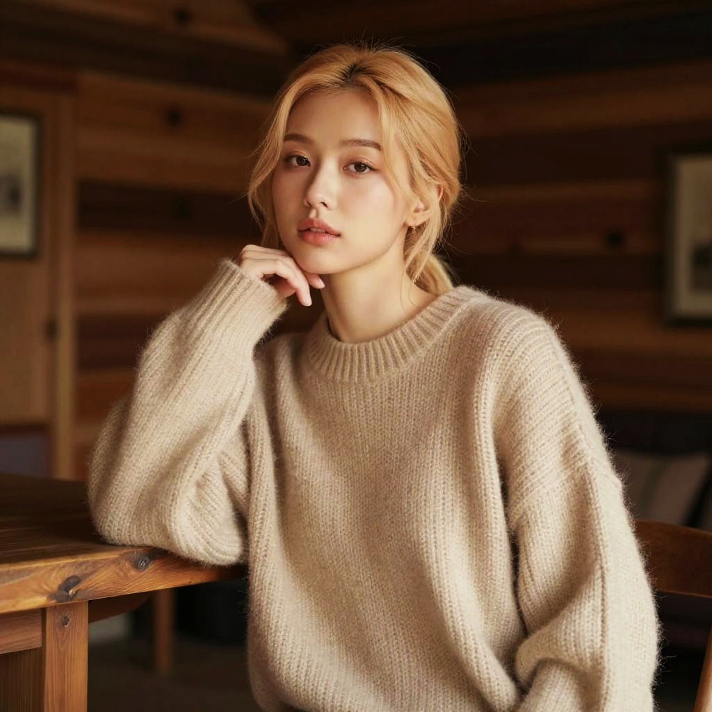 Rose Gold hairstyle on teenage girl, wearing casual denim jacket, in city skate park, captured in fashion editorial style with warm golden hue.