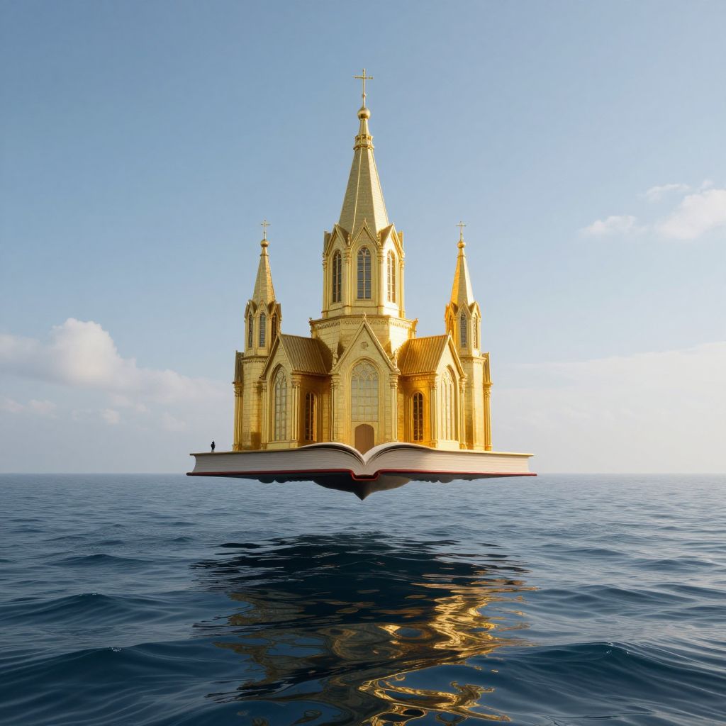 Floating Golden Cathedral Above Ocean Books