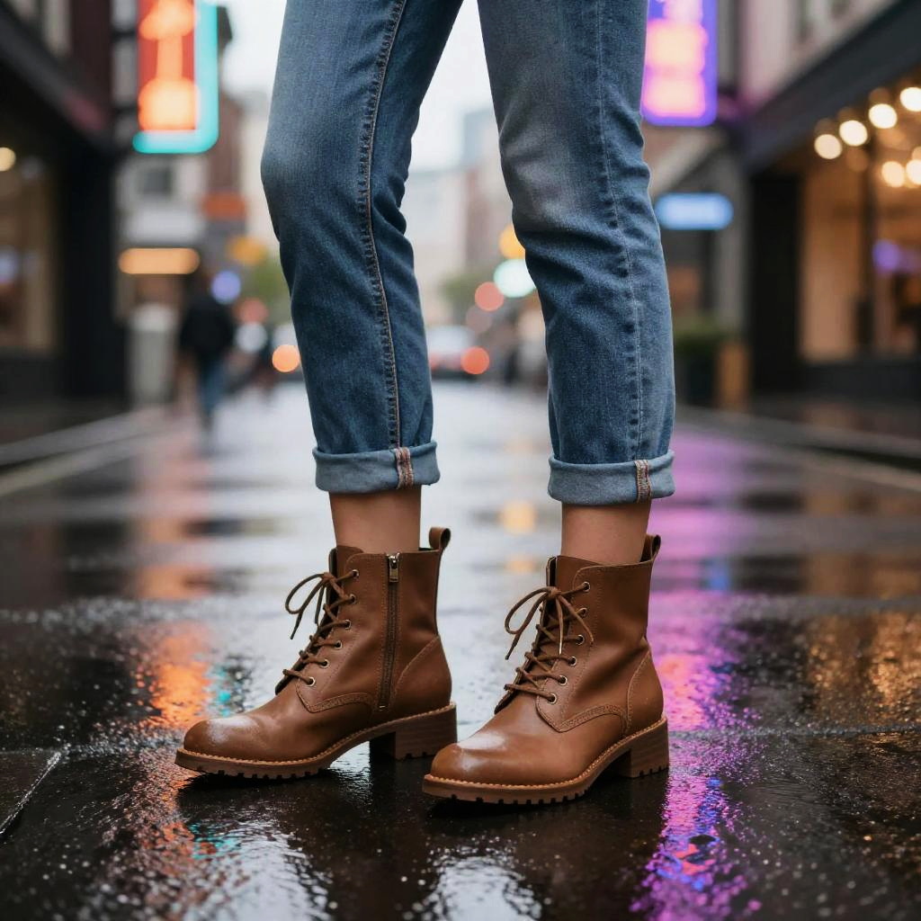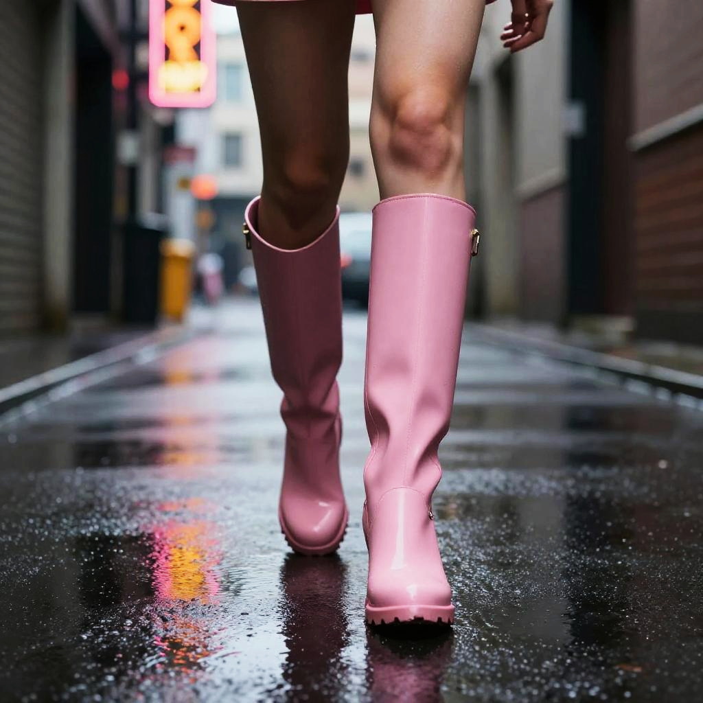 Pink Latex Boots on Reflective Surface