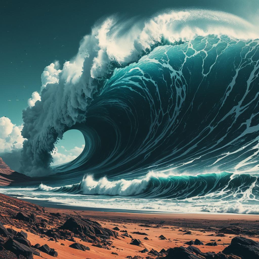 Surreal Giant Ocean Wave Over Desert