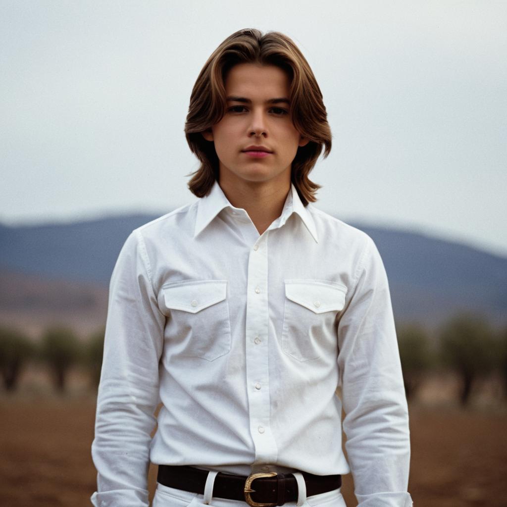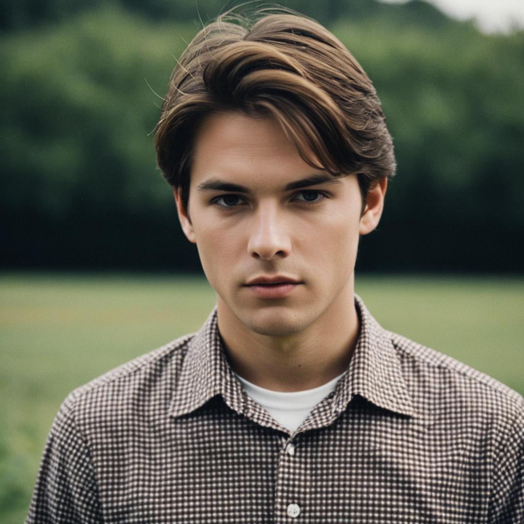 German costume man,1boy, male focus, solo, looking at viewer, outdoors, pants, blurry, blurry background, brown hair, realistic, long sleeves, vest, black pants, tree, standing, closed mouth, short hair