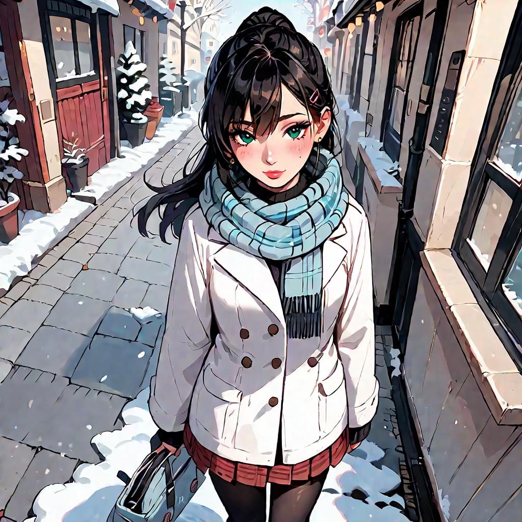 Score_9, score_8_up, score_7_up, score_6_up, score_5_up, score_4_up, masterpiece, best quality, solo, gift, scarf, looking at viewer, blush, long sleeves, black hair, valentine, window, indoors, two side up, school uniform, lens flare, bangs, desk, brown scarf, lying, yellow eyes, on stomach, gift box, box, brown eyes, long hair