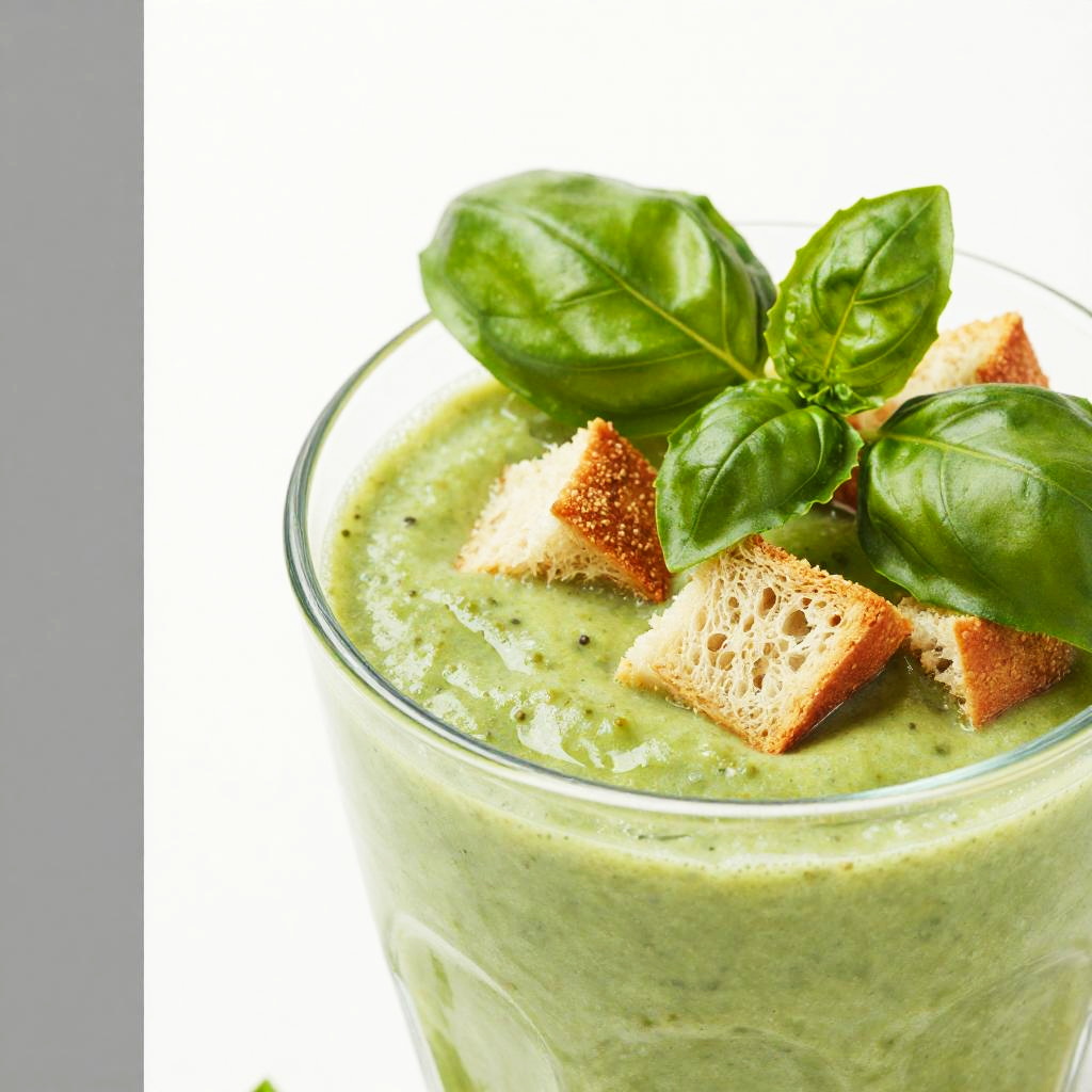 A vibrant, close-up photo of a glass filled with a bright orange, seed-speckled drink, garnished with fresh green parsley leaves. A few more parsley sprigs are scattered around the base of the glass. The glass has a clear, thick stem and is placed against a white background with a gray border on the sides. The drink looks refreshing and lively!