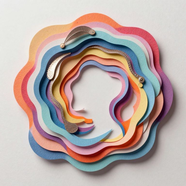Papercut AI design, artificial intelligence shaped from delicate paper strips, layered papercraft with fine edges, vibrant colors blending with metallic elements, soft lighting highlighting textures, surreal futuristic ambiance, creative papercutting artistry