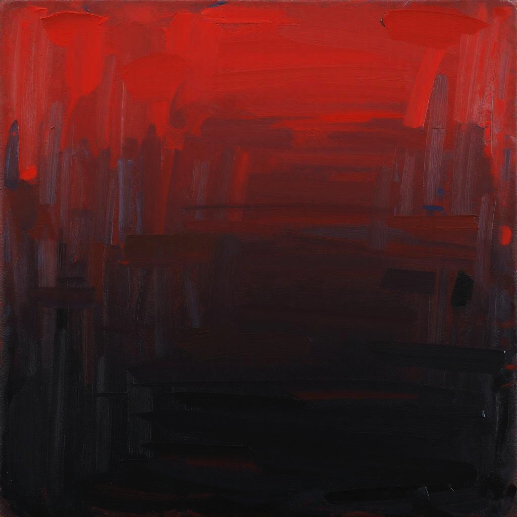 Red to black gradient abstract painting, dynamic brushstrokes blending warm red into dark black shades, expressive and intense mood, contemporary art