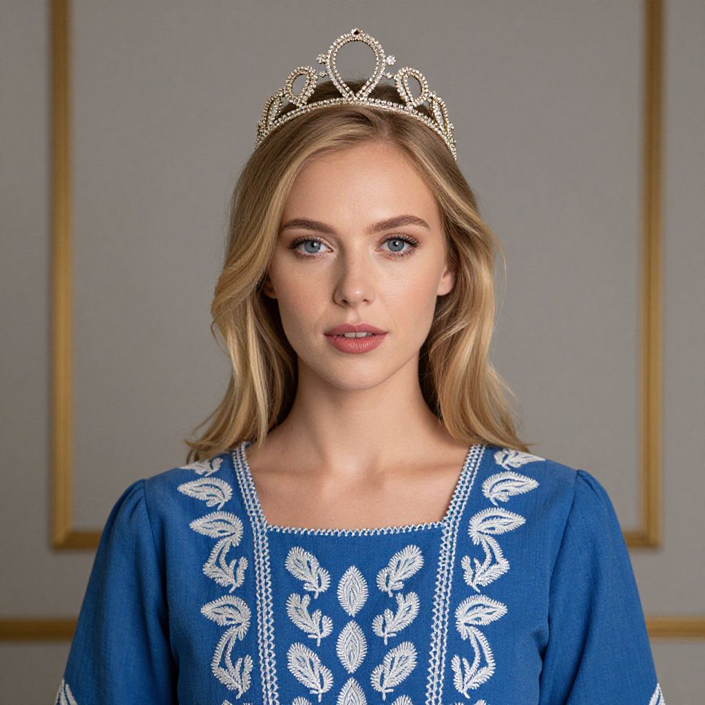 Blonde Woman in Blue Dress with Crown