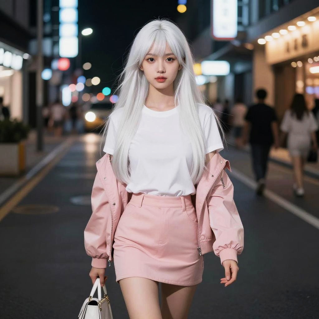 Best quality, masterpiece, ultra high res, (photo realistic:1.1), professional lighting, physically-based rendering, (1girl ), (beautiful college girl), (long hair), (pink hair:1.31), (disheveled hair), hair down, bangs, ((((Wearing an open white shirt with black underwear and a pink pleated skirt underneath)))), (thin figure:1.51), (medium breasts:1.31), navel, pubis, (skinny:1.51), (slim legs:1.51), thigh gap, (Sit cross legged), NSFW, looking at viewer, ((((wearing black fishnet stockings)))), (curvy:1.3), choker, ((bus stop)), (finely detailed beautiful eyes: 1.2), beautiful detailed nose, day, school, Bright face with light on the front