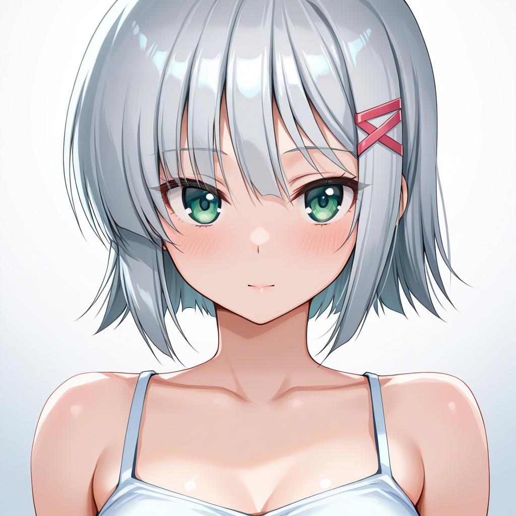 Aizawa sakuya, hayate no gotoku!, 1girl, green eyes, short hair, grey hair, hairclip, by artist picter, illustrious