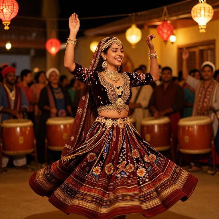 Sakira portrayed as a cultural ambassador in a traditional festival scene, capturing rich textiles, ornate jewelry, and vivid decorations, dancing joyfully among a crowd celebrating with lanterns and drums, warm lighting highlighting community and tradition.