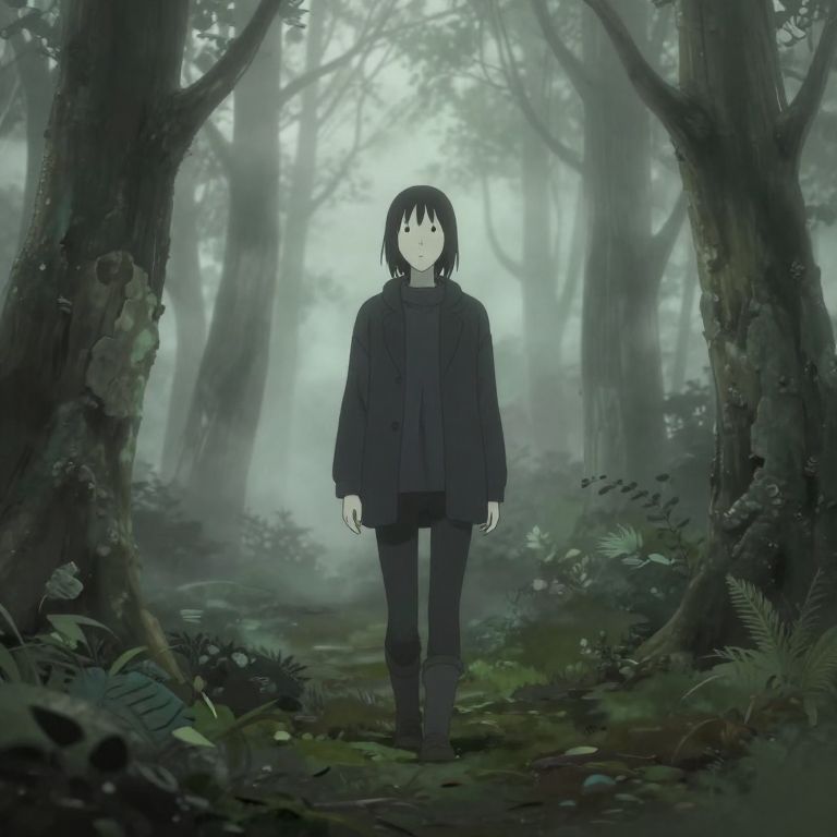 Anime self harm focus, character in a quiet forest clearing, wounds partially healed, soft glow around, blending realism and anime style, atmosphere of healing and resilience