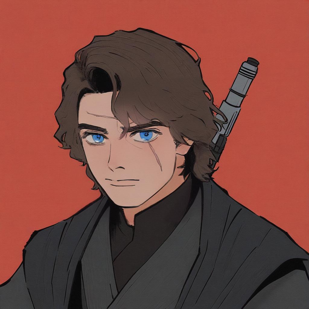 Illustration of Anakin skywalker, star wars in the style of Tsukiman