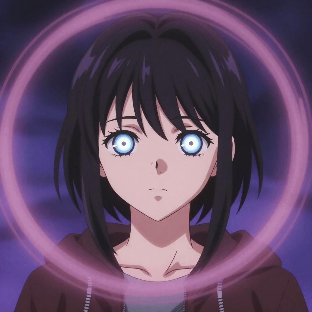 Anime girl hypnosis scene, vibrant colors, swirling spiral background, mesmerizing eyes, soft lighting, detailed character design, futuristic cyberpunk style, intense focus expression