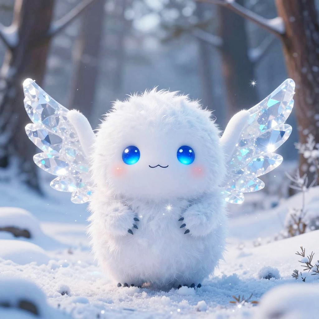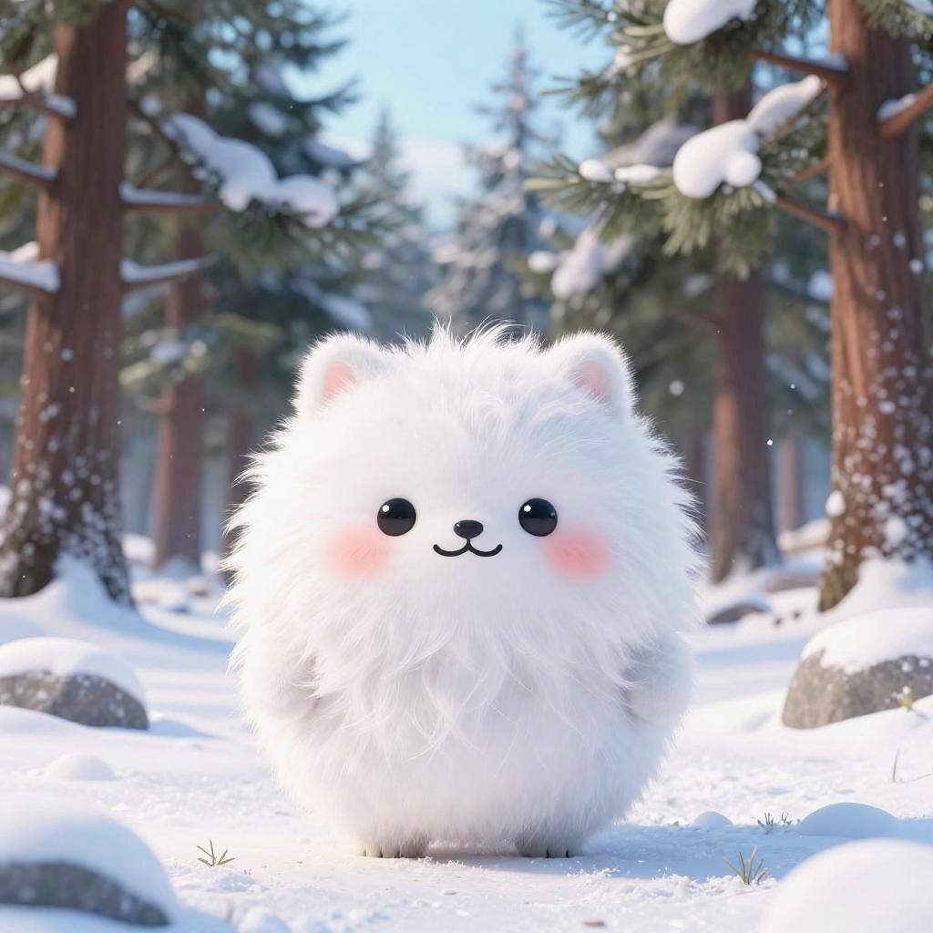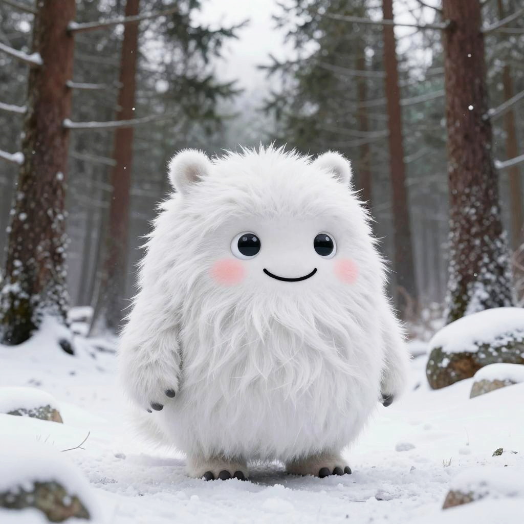 Cute Fluffy Creature in Snowy Forest
