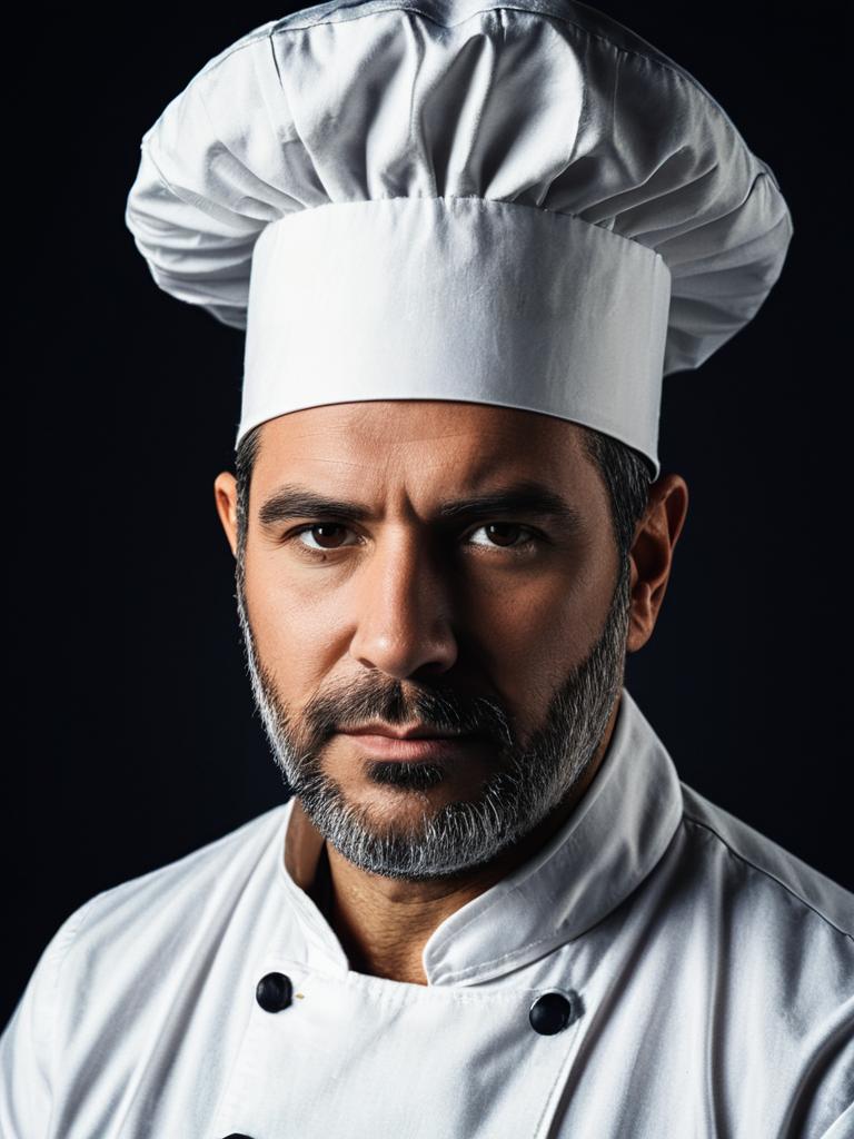 Man in Chef Costume, close-up detailed headshot with chef hat