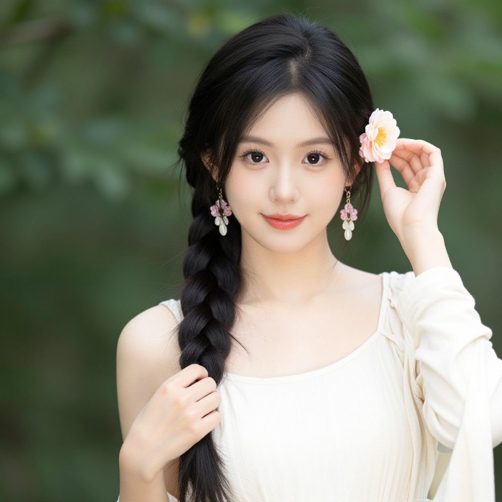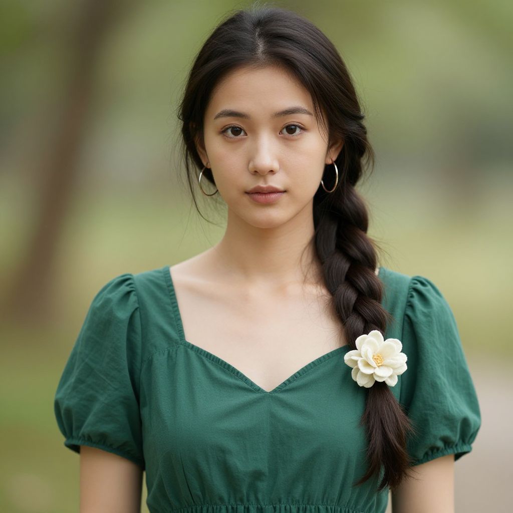 Girl with Braids and Floral Headband