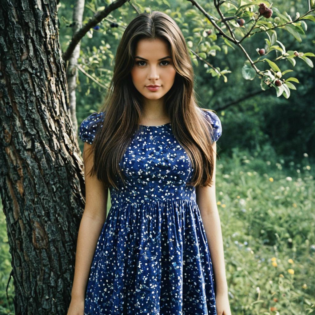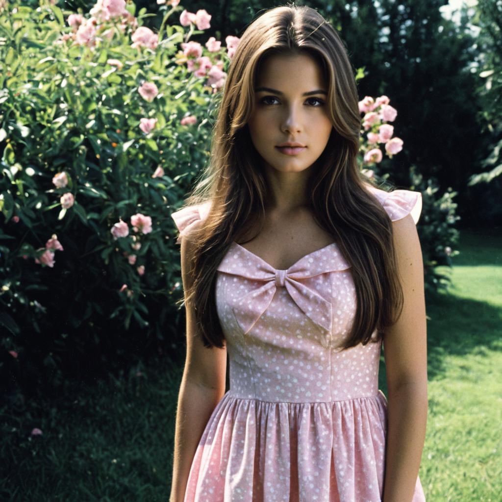 Young Woman in Floral Dress with Flower Crown